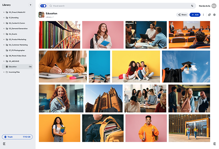 - Organize and centralize all of your institution’s visual assets across multiple departments