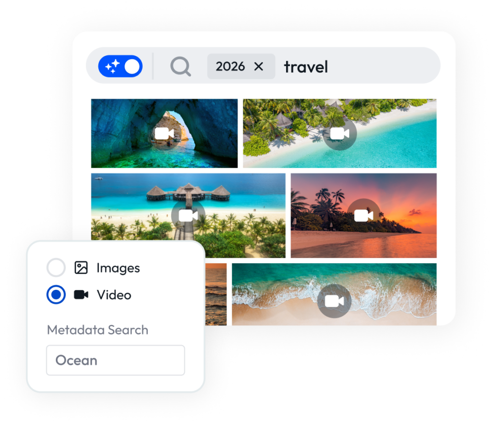 Use AI Visual Search for video, search through transcripts, and use time-based metadata to find specific moments easily.