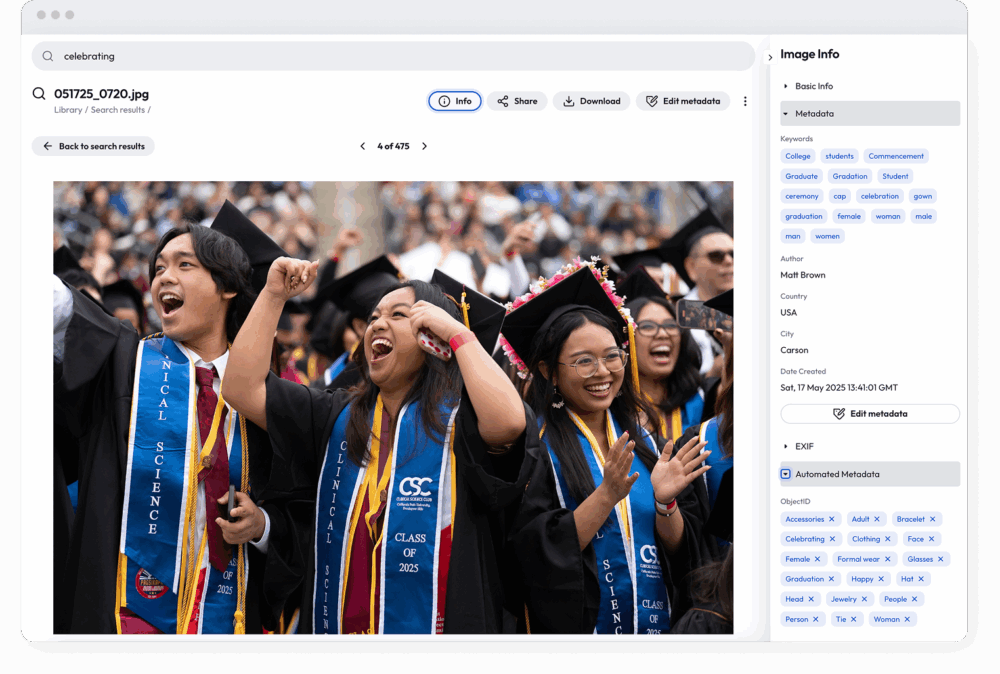 California State University Dominguez Hills (CSUDH) is a diverse public institution in Los Angeles County serving more than 16,000 students each year. With a strong focus on academic excellence and community engagement, the university captures thousands of photos documenting student life, events, and milestones. As its visual library expanded, CSUDH needed a professional, searchable system to organize and share its growing collection of assets across departments, designers, and alumni.