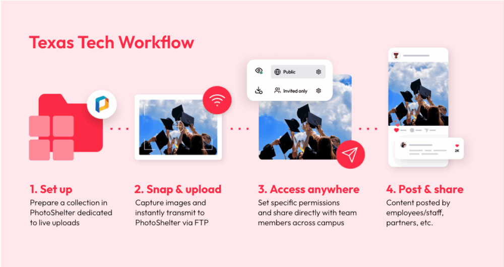 With PhotoShelter, Texas Tech stores everything in one place – saving them time, simplifying collaboration, and speeding up photo delivery.