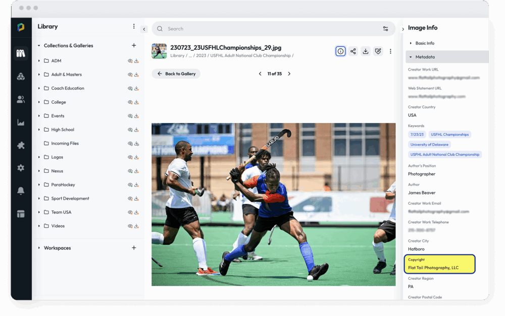 USA Field Hockey turned a fragmented, high-risk workflow into a streamlined system that supports their mission. Organization became possible because of PhotoShelter’s design for visual content. Athletes can now amplify their stories because metadata and permissions keep things safe and usable.
